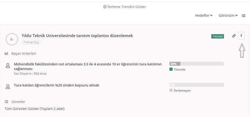 Hedefler sayfasında geri çekmek istediğiniz hedefin, işlemler menüsünden geri çek linkine tıklamalısınız.