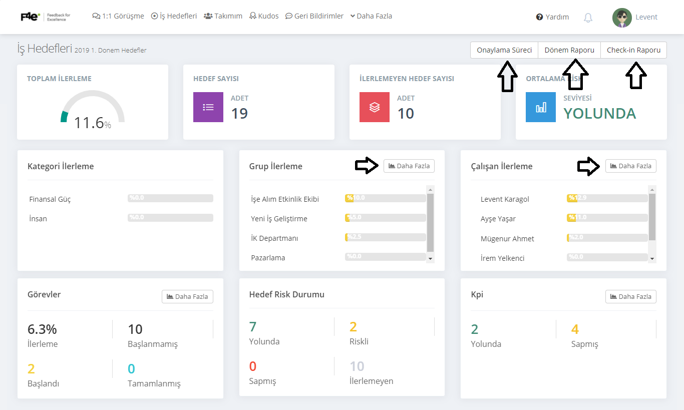 Çalışan Bazlı İlerleme Raporu : Çalışan hedeflerinin listelendiği rapordur.