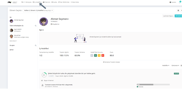 Başarı kriterlerini oluştururken sorumlu atayabileceğin gibi oluşturduktan sonra da sorumlu atayabilirsin. Bunun için ilk olarak iş hedefleri penceresine tıklaman gerekiyor.