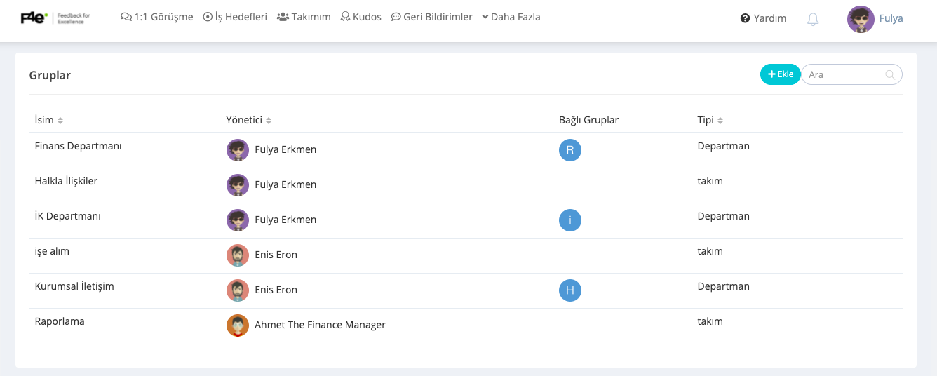 İstersen gruba bir yönetici atayabilirsin. Bir çalışan birçok grubun yöneticisi olabilir.