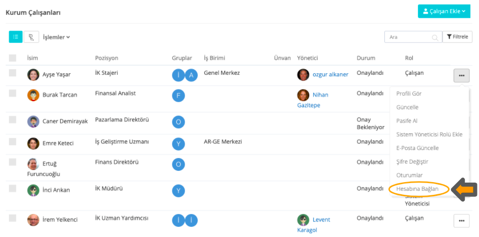 Daha fazla > Yönetim > Çalışanlar