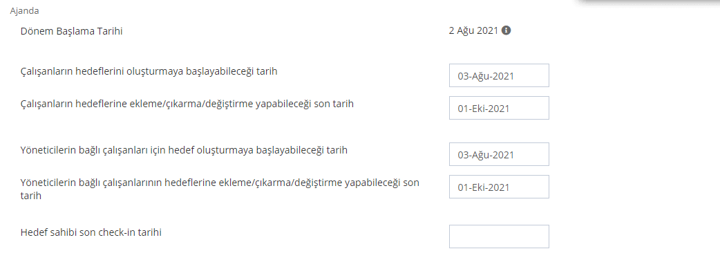 - 2. sayfada yer alan hedef dönemi konfigurasyonu sayfasındaki ajanda bölümünde yer alan tarihleri güncellemeniz gerekmektedir