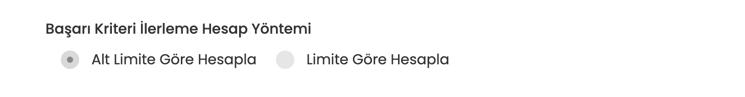 Başarı kriteri ilerlemesinin hesap yöntemi 2 farklı seçenekte kullanıcıya sunulur. Seçilmiş yöntemin dönem devam ederken değiştirilmesi, daha önce yapılan check-in ilerlemelerini değiştirmez. BU NOKTADA DİKKATLİ OLUNMALIDIR.
