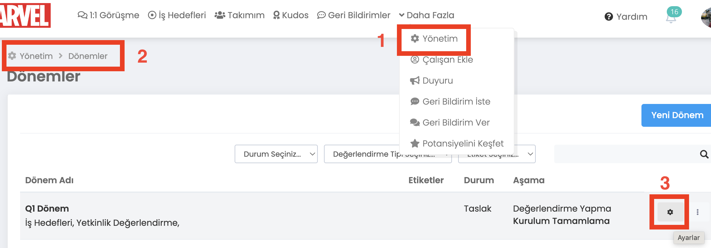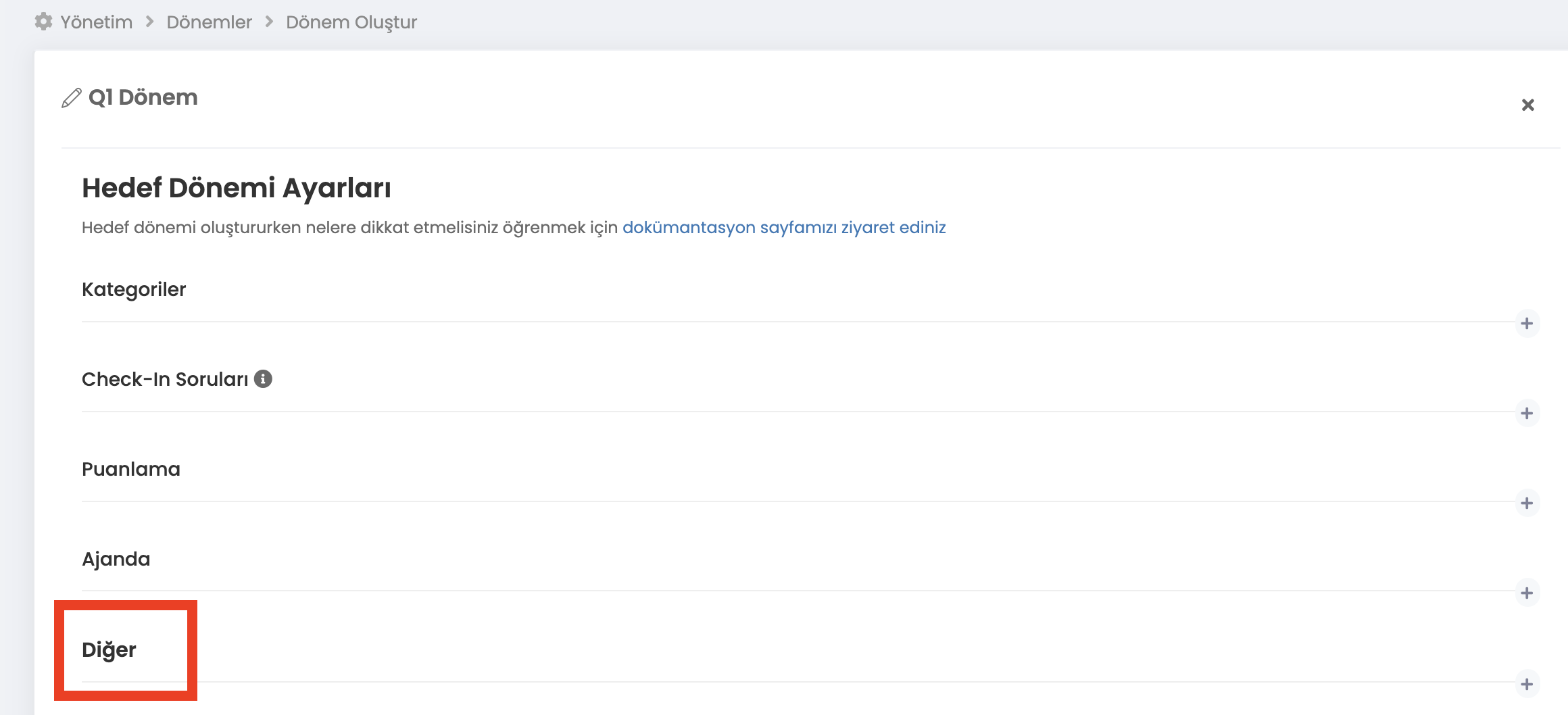 Daha Fazla->Yönetim->Dönem Yönetimi->Hedef Dönemi Ayarları->Diğer->Başarı Kriteri İlerleme Hesap Yöntemi