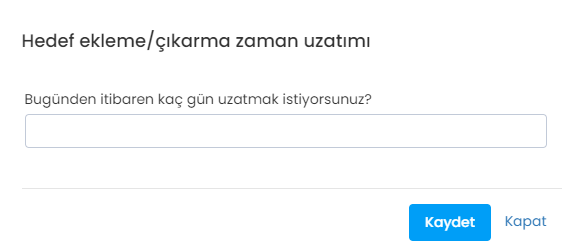 Her ne kadar hedef ekleme, çıkarma ve güncelleme zamanları dönem bazında tüm kullanıcılar için ayarlanıyor olsa da, kullanıcı bazlı olarak süre uzatımı yapabilirsin. Bunun için