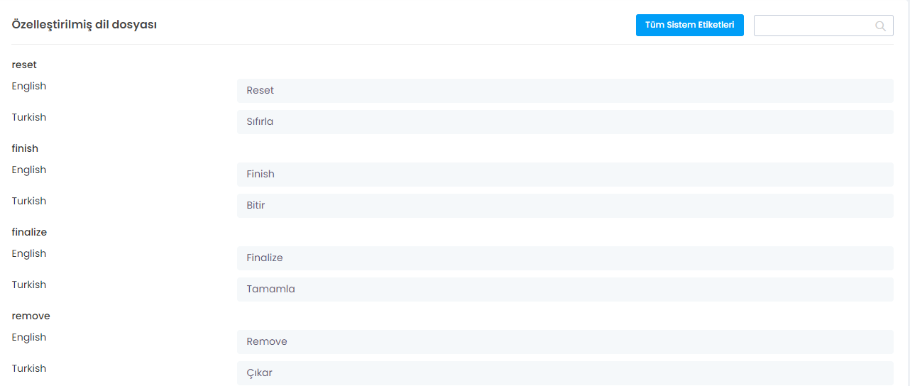 Daha fazla > Yönetim > Ayarlar - Özelleştirilmiş Dil Dosyası