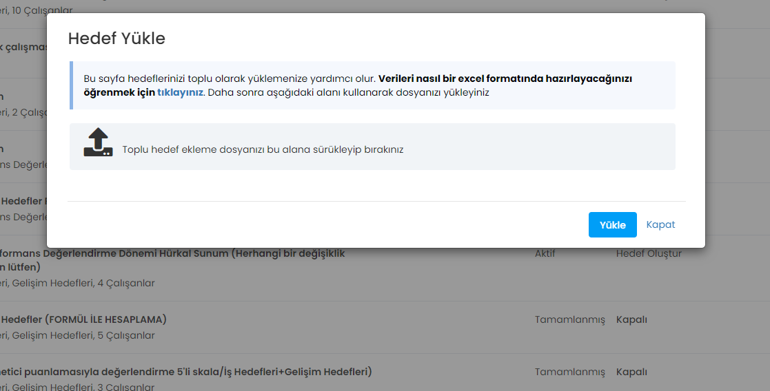 Toplu Hedef Yükleme İş hedefleri, hedeflerini toplu yükleme yüklemek