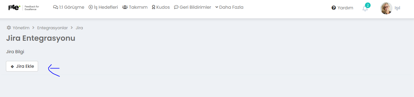 Yönetim > Entegrasyonlar > Jira sayfasına git