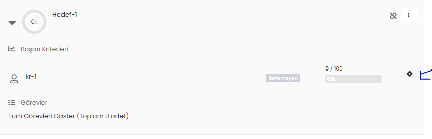 İlişkilendirilmiş basari kriterinin yanında Jira ikonunun göreceksin. Bu örnek için 2 adet issue ilişkilendirdik. 2 issue de done durumuna geldiğinde kr-1 %100 ilerleyecek.