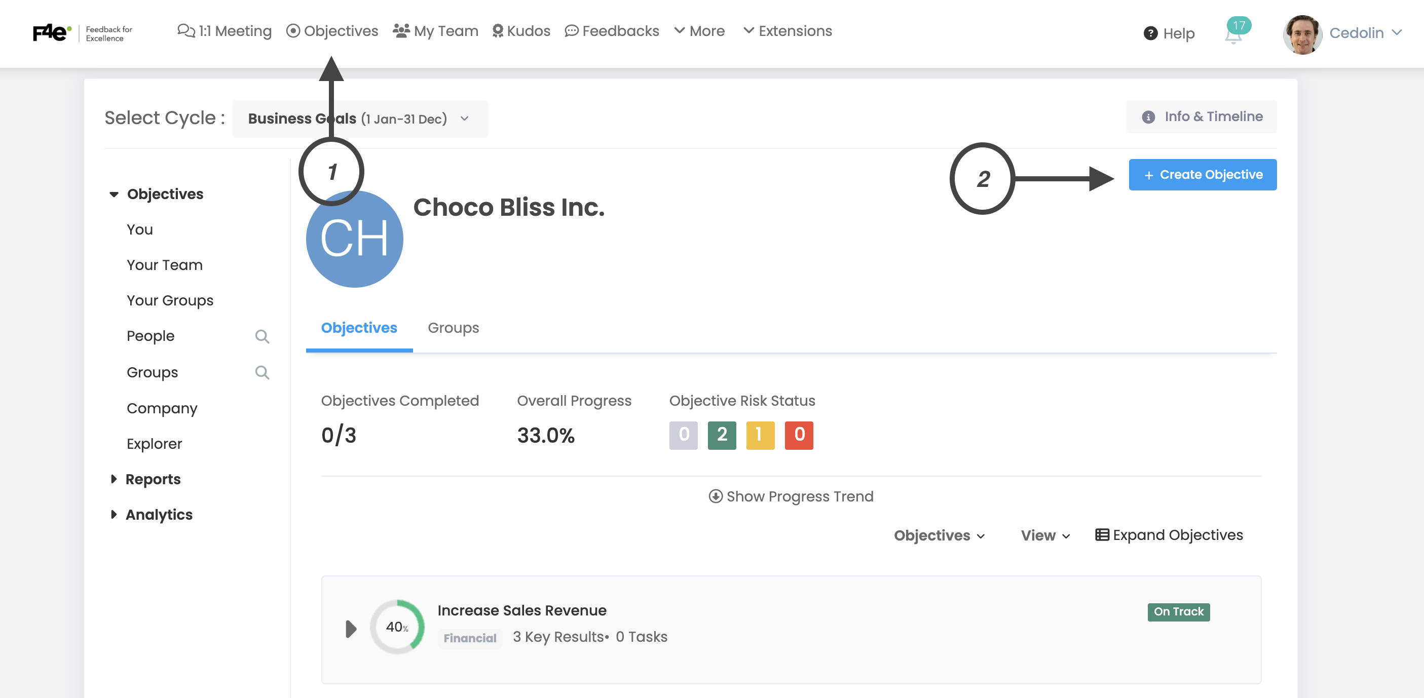 Company objectives are transparent and viewable by all employees participating in the objective cycle. Employees can comment on company goals, key results and check-ins, and follow key results.