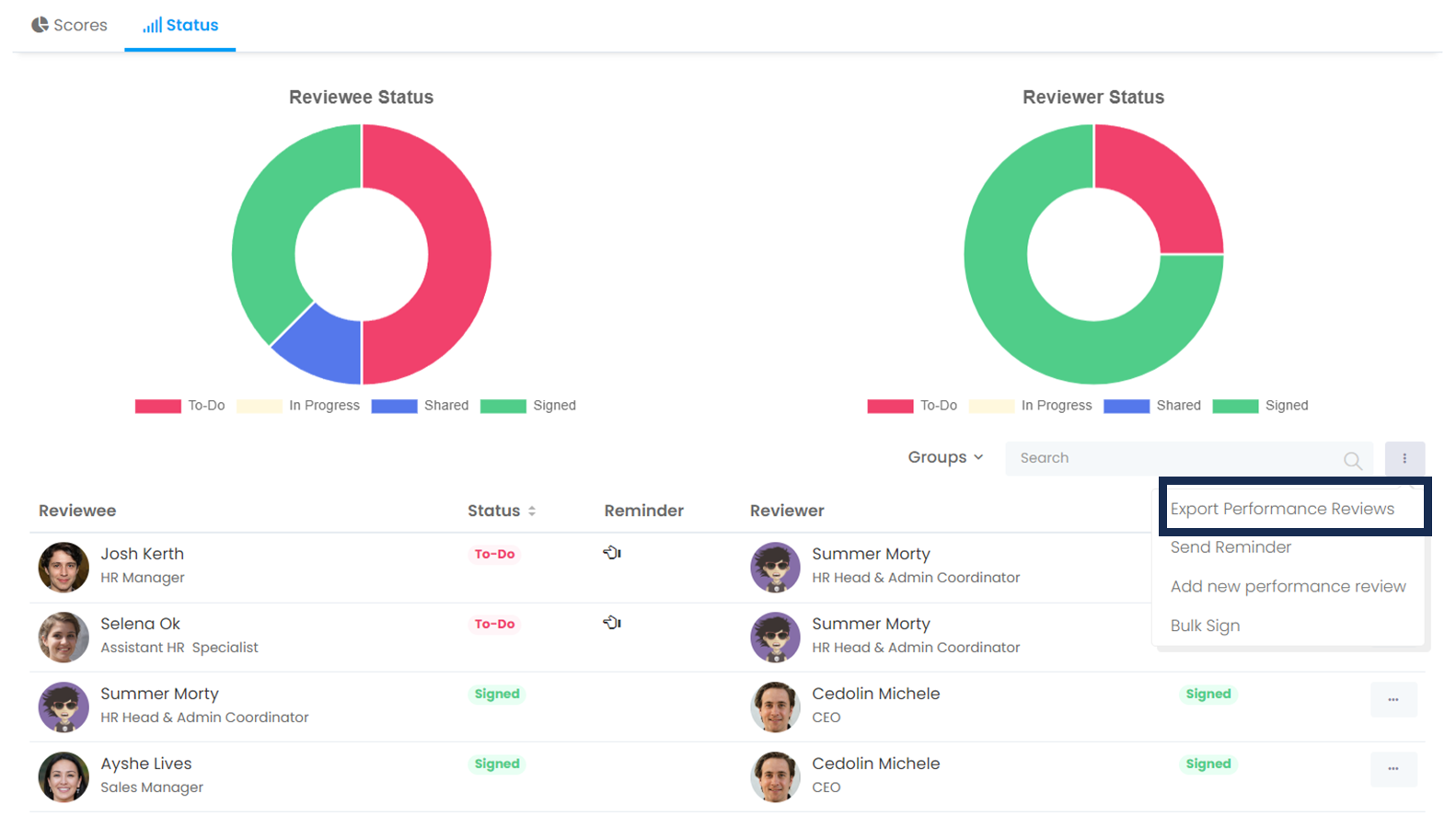 More > Administration > Cycle Management > Report Button of the Relevant Period > Export Performance Reviews
