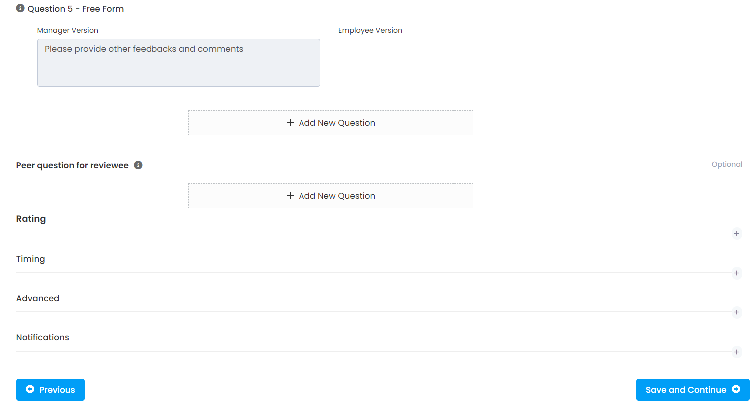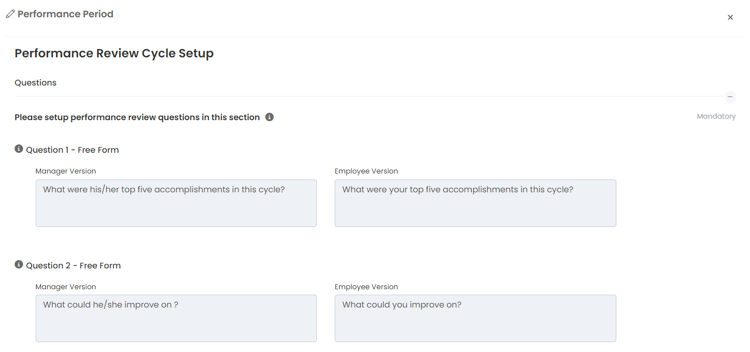- When you select Both, the employee version of the question will be asked to the employee, and the manager version will be asked to the manager. The answers of both will be shared with each other.