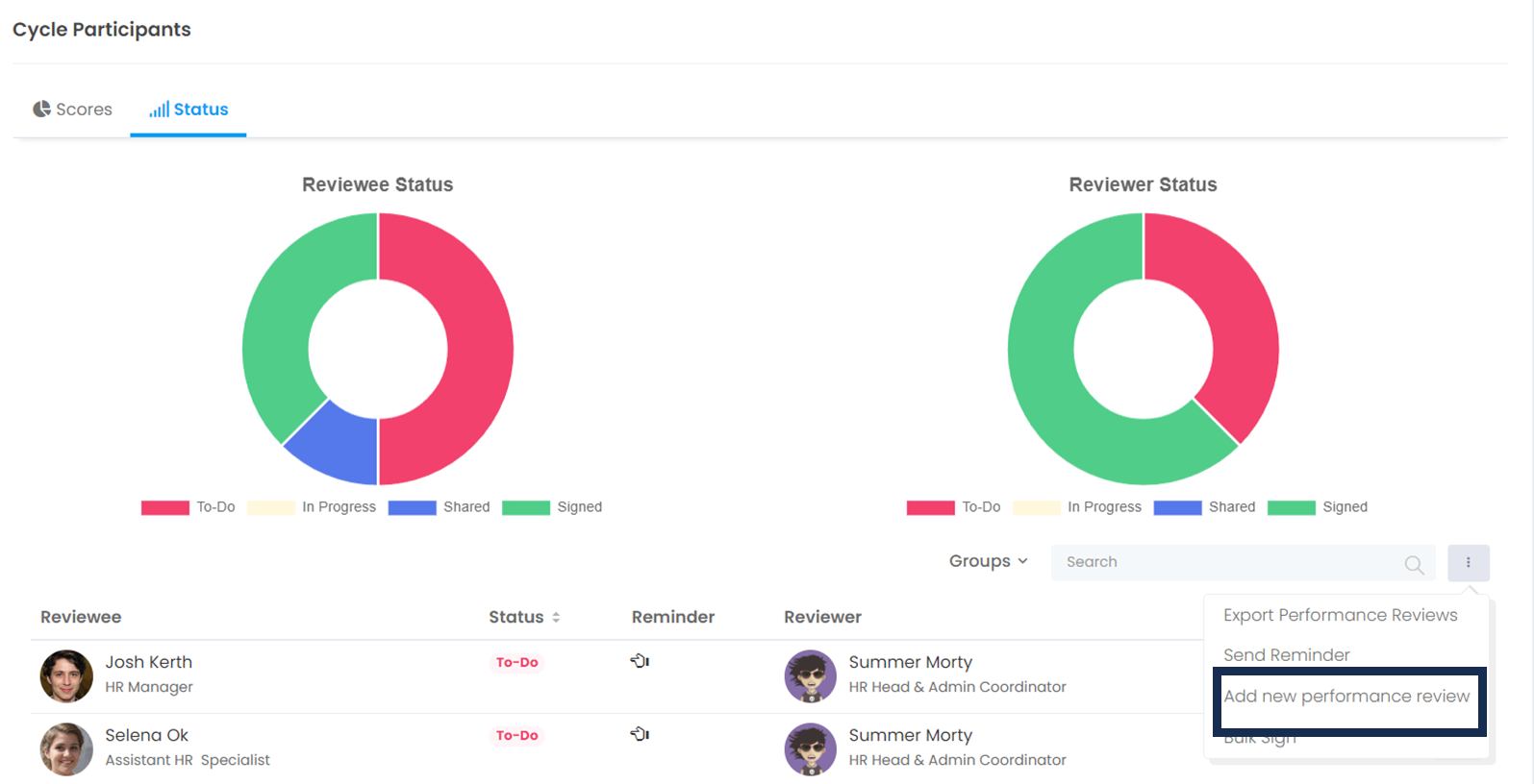 - When you select an employee, the question will be answered by the employee and the answer will not be shared with the manager.