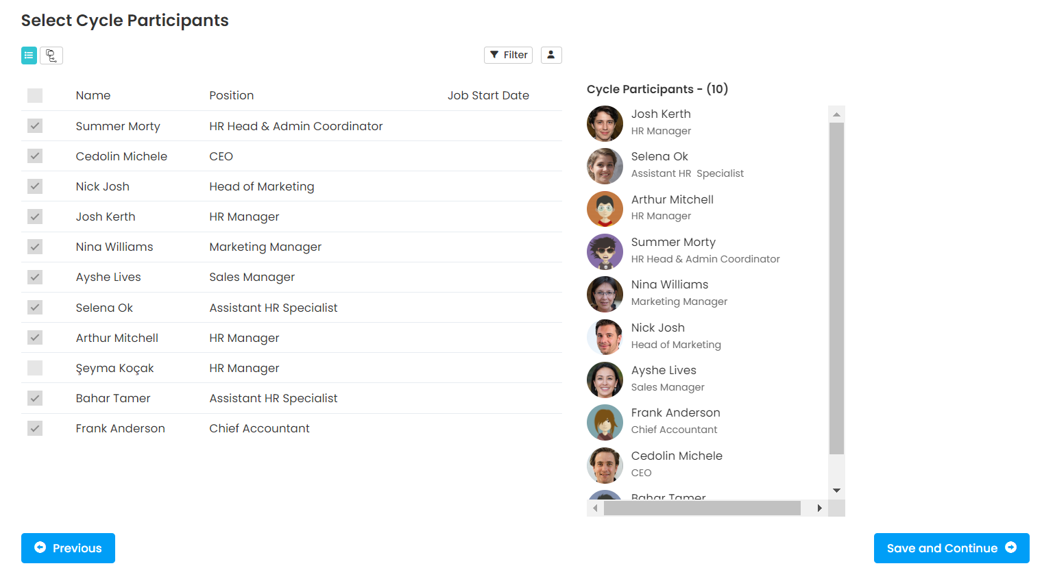 The questions to be asked to colleagues can be defined by the employee's manager for a more accurate evaluation. For the evaluated employee, the manager sends a feedback request to selected colleagues to answer the questions.