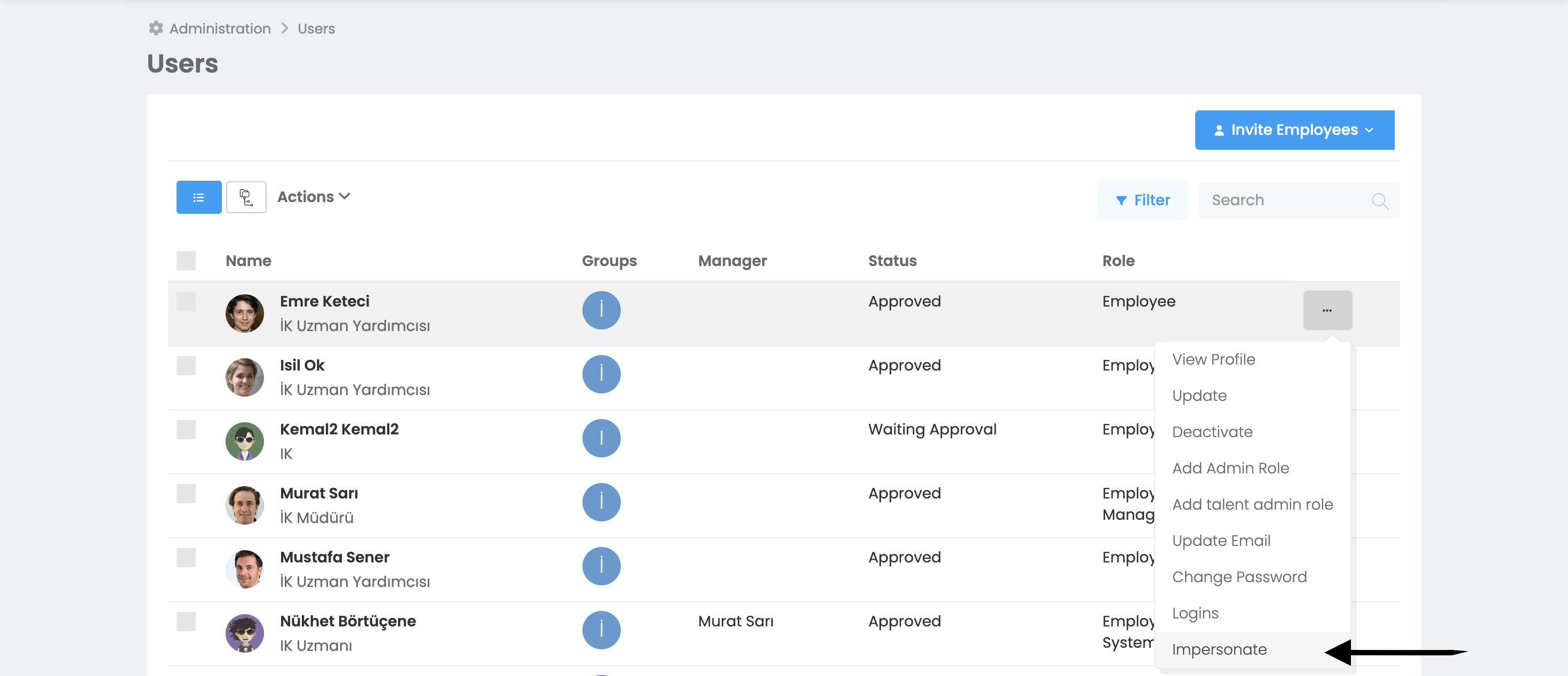 More > Management > Employees