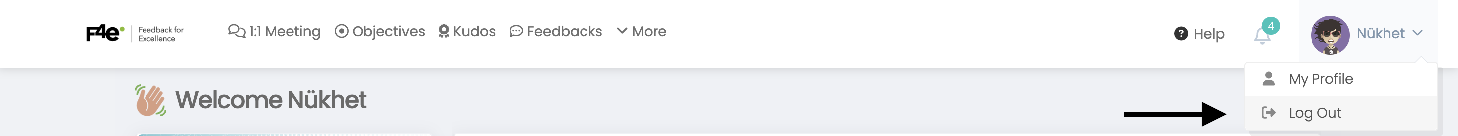 To log out of the user account, you can log out of the account by clicking on the user name in the upper right corner in the picture below and clicking "Log Out".