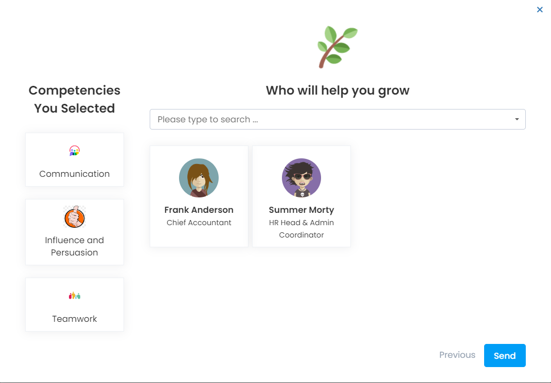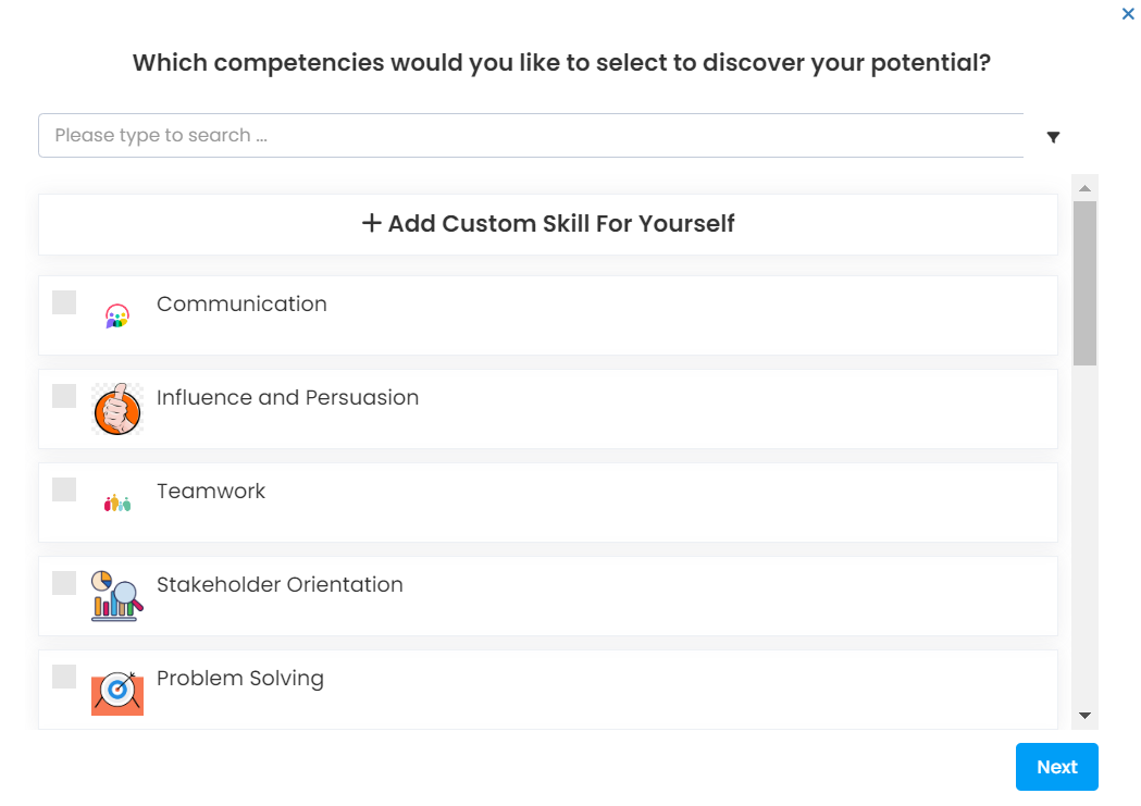 - The user selects the competencies for which he/she wants to receive feedback.