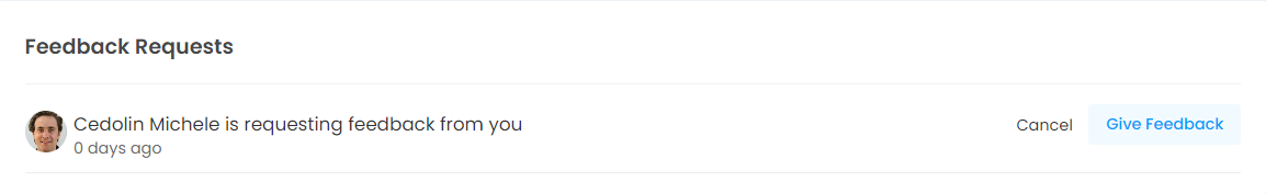 Feedback requests are listed on the home page. If the cancel button is clicked, the request will no longer be listed in this area. This means the user does not want to respond to feedback. If he wants to reply, he must click on the "Give Feedback" button.