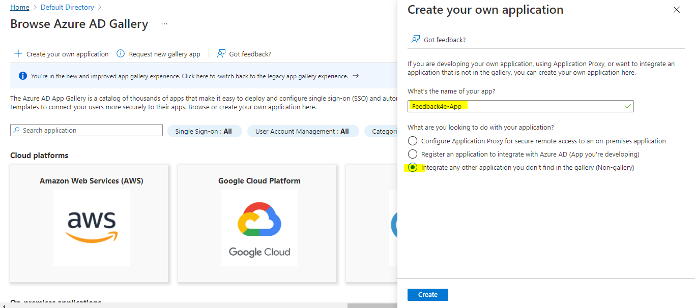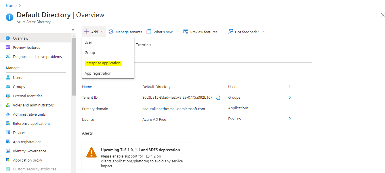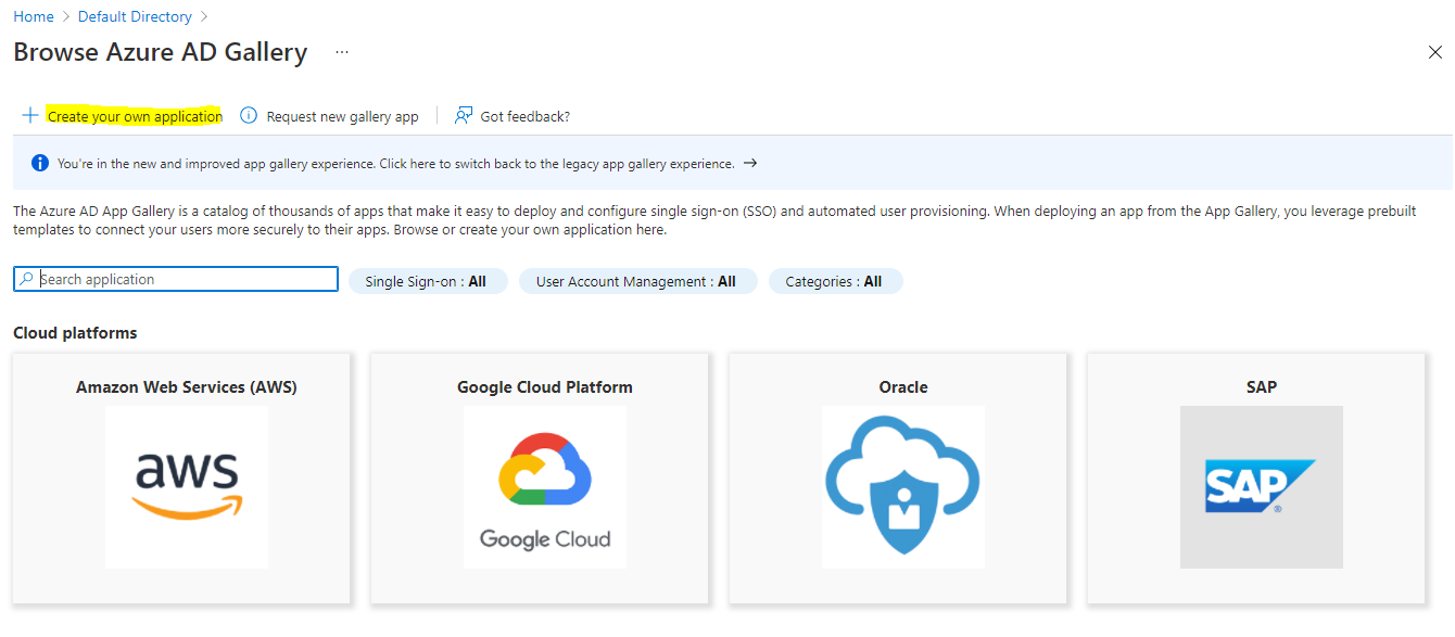Click the link above to add a new Enterprise application.