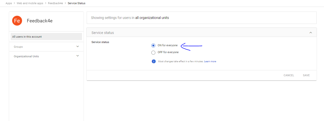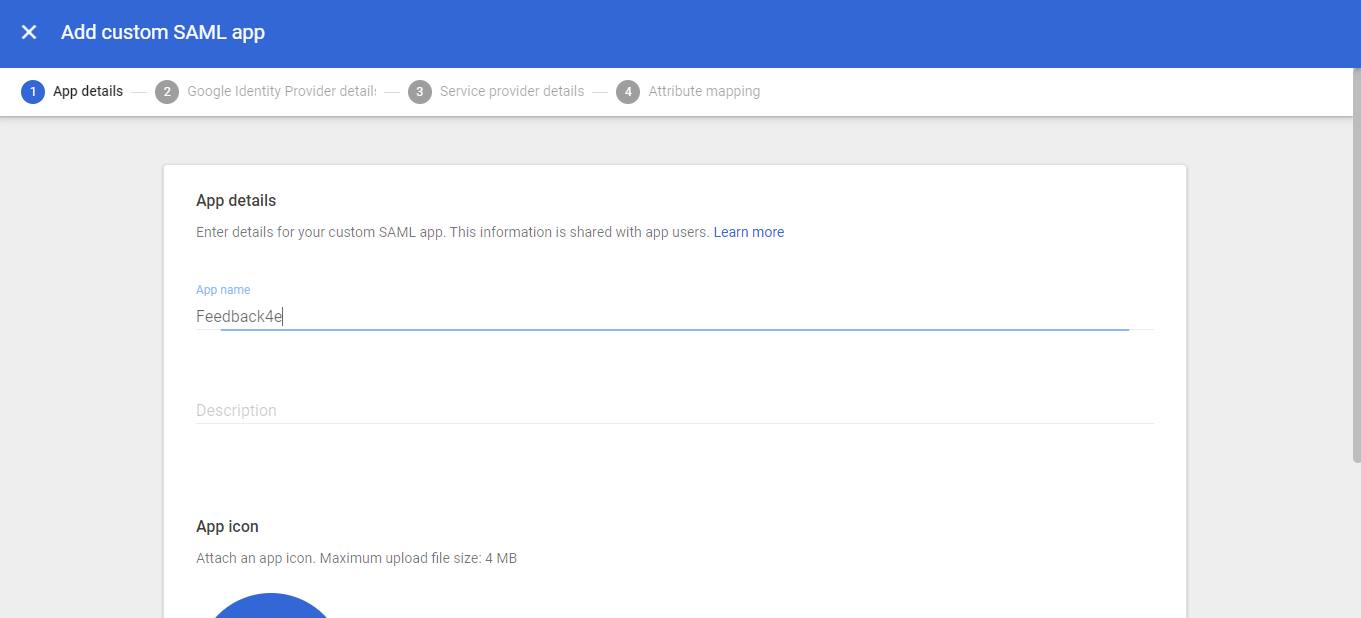 Put Feedback4e in the app name on the first page of the app step