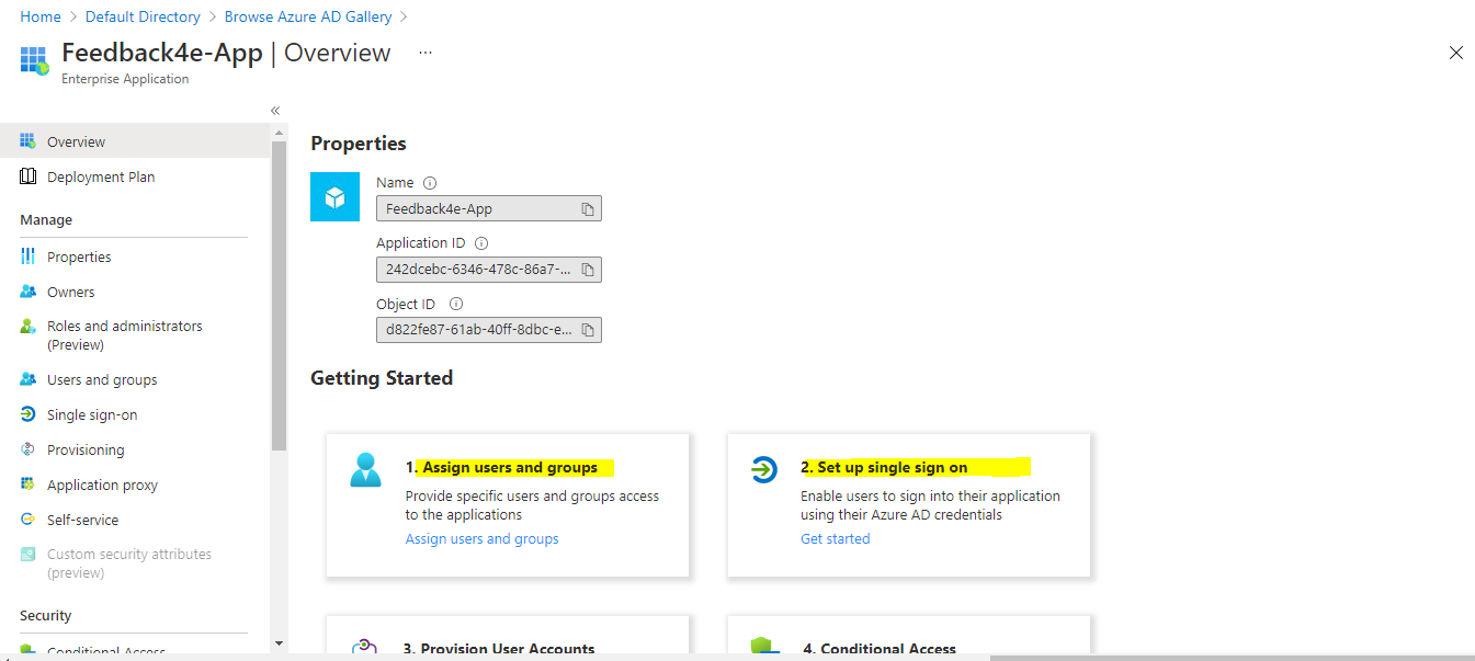 The application was created as follows. Now add users to this application using the "Assign Users and Groups" option in step 1.