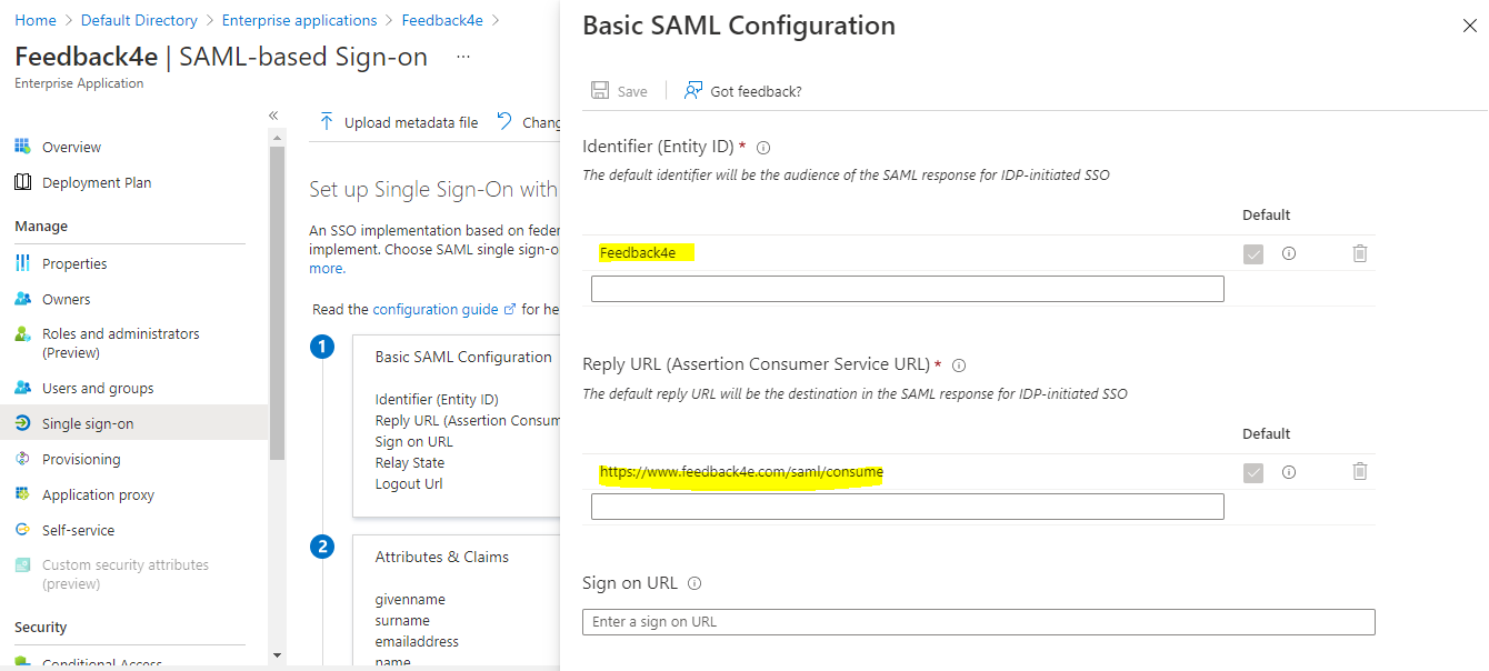 - Azure Active Directory SAML Configuration