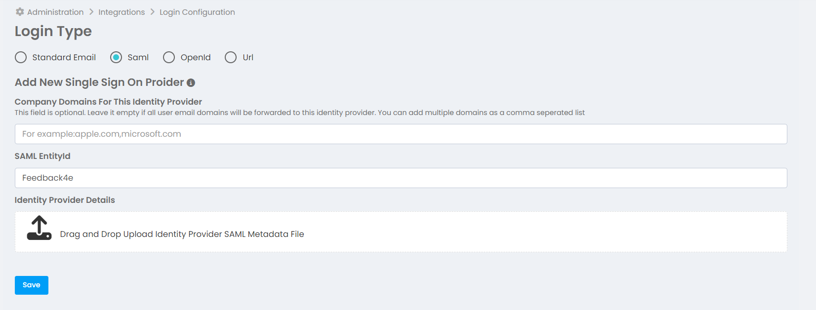 More > Administration > Integrationsr > Login Configuration