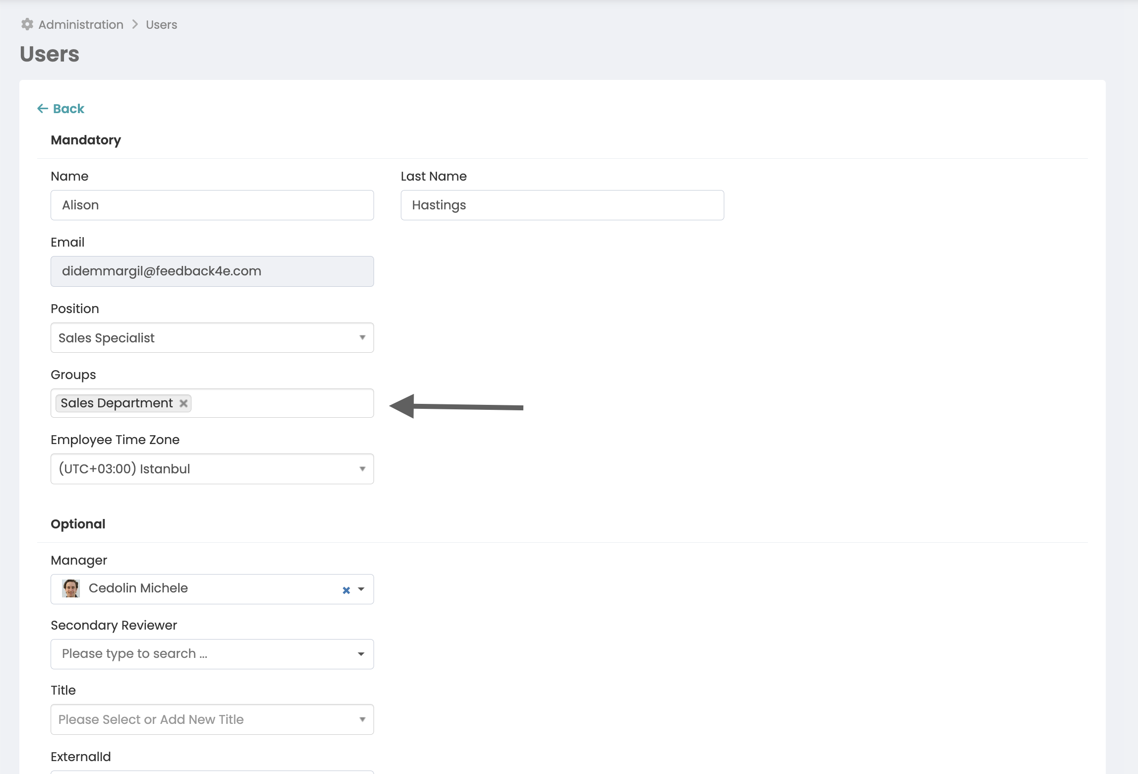 After creating the group, you need to assign employees who will manage company goals to this group. For this